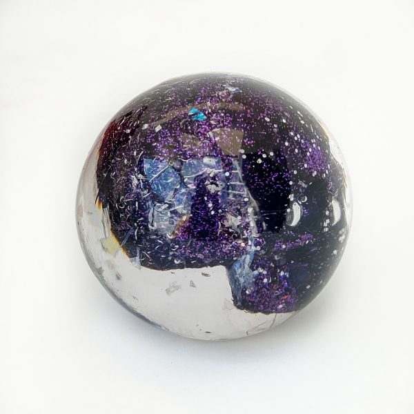 Confeccionado con orgón: resina, metal aluminio y cristales.