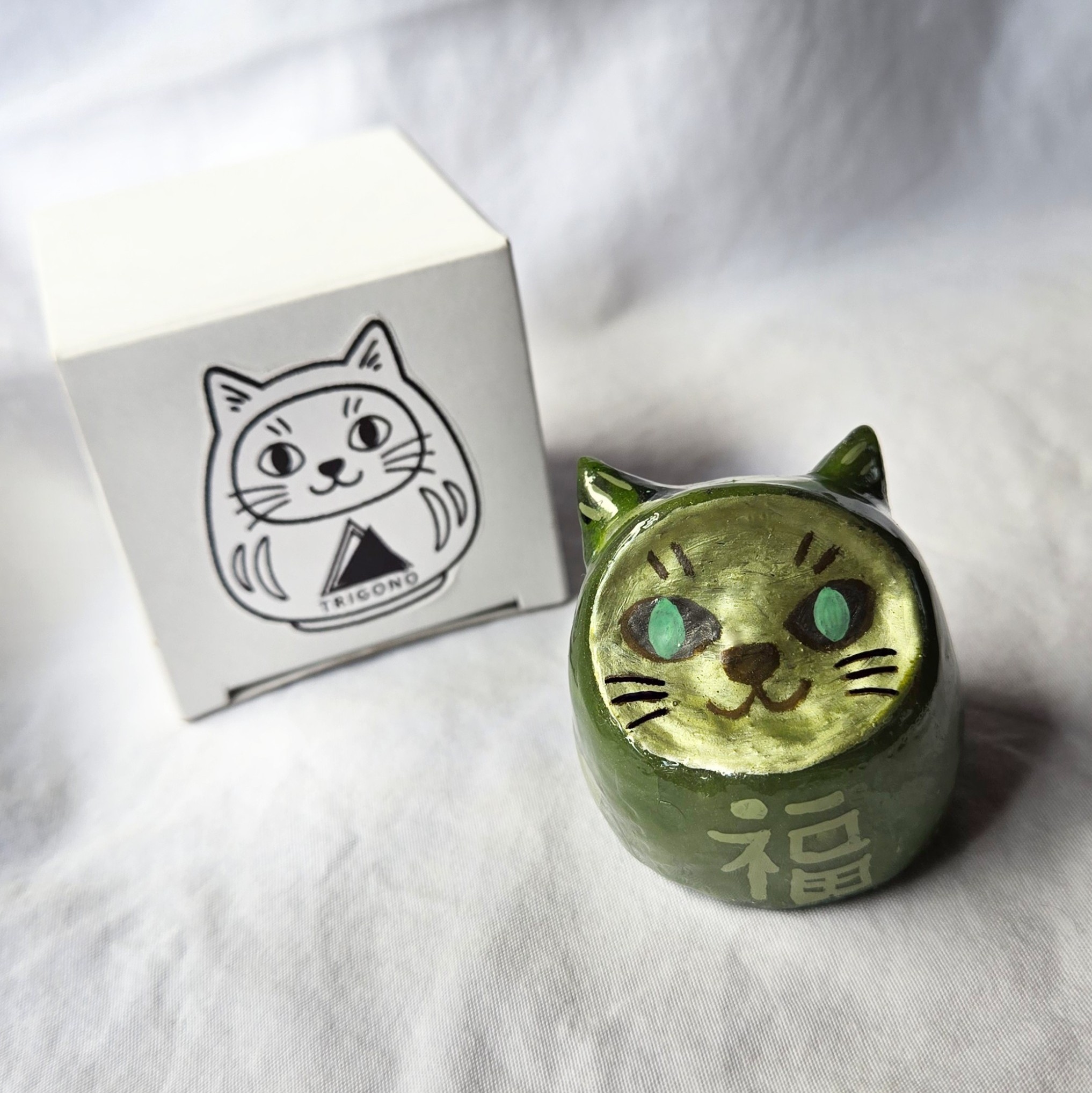 Los daruma son amuletos japoneses de buena suerte, perseverancia y logro de metas. Vienen con una tarjeta con los ojos en blanco: cuando alguien se fija una meta o deseo, pinta un ojo; y cuando se cumple, se pinta el otro. En este caso tendrán doble poder porque son daruma gatos, e invocan a los dioses terrestres más amados.