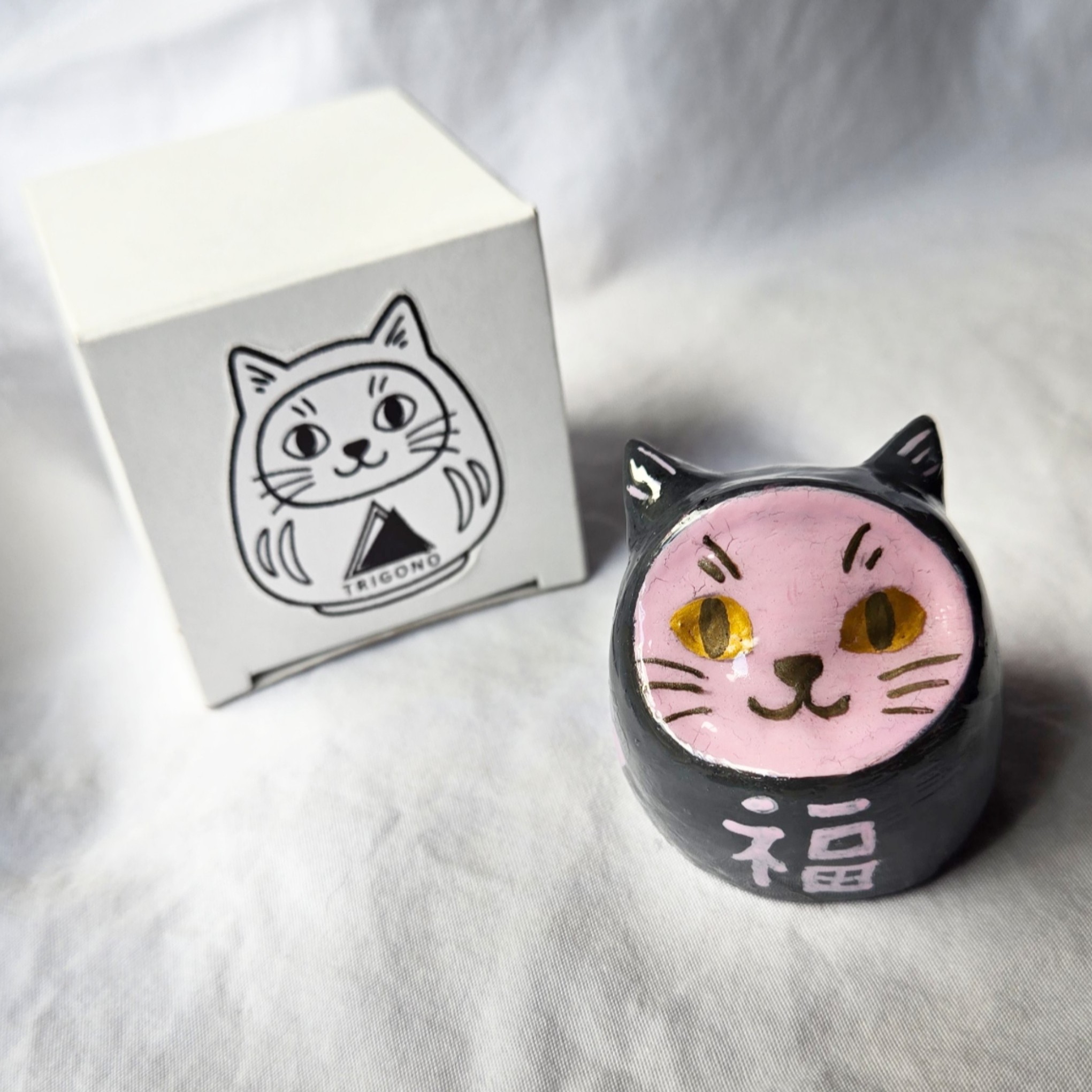 Los daruma son amuletos japoneses de buena suerte, perseverancia y logro de metas. Vienen con una tarjeta con los ojos en blanco: cuando alguien se fija una meta o deseo, pinta un ojo; y cuando se cumple, se pinta el otro. En este caso tendrán doble poder porque son daruma gatos, e invocan a los dioses terrestres más amados.